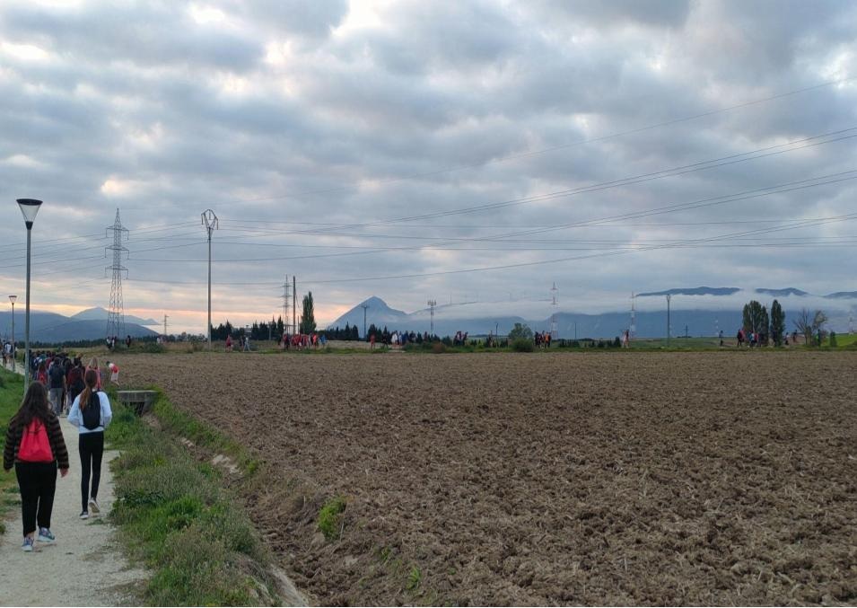 Por su parte, el alumnado de 2º de ESO efectuó una ruta desde Zizur Mayor hasta el pueblo de Astrain, pasando por las pistas del valle, por los terrenos de Sagües y Muru-Astrain para luego acabar almorzando en Astrain antes de emprender el camino de regreso al instituto.